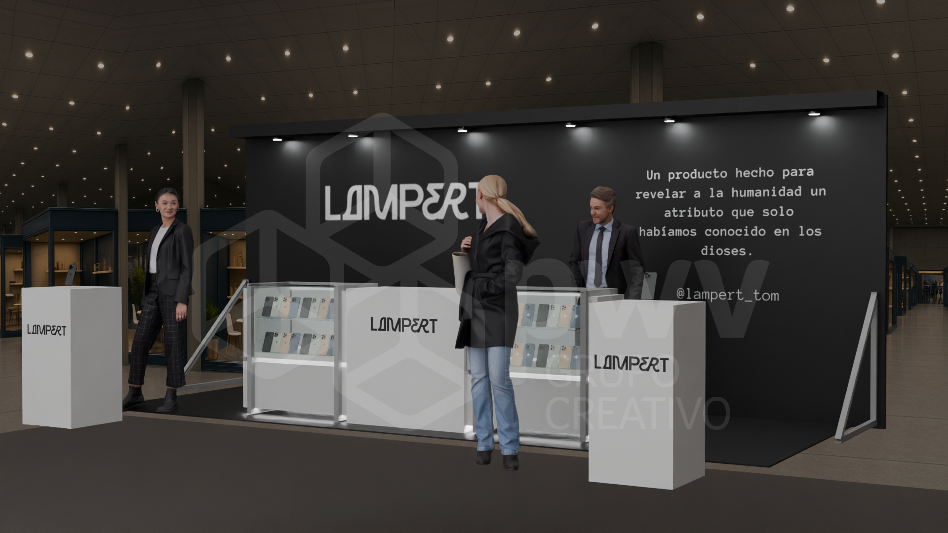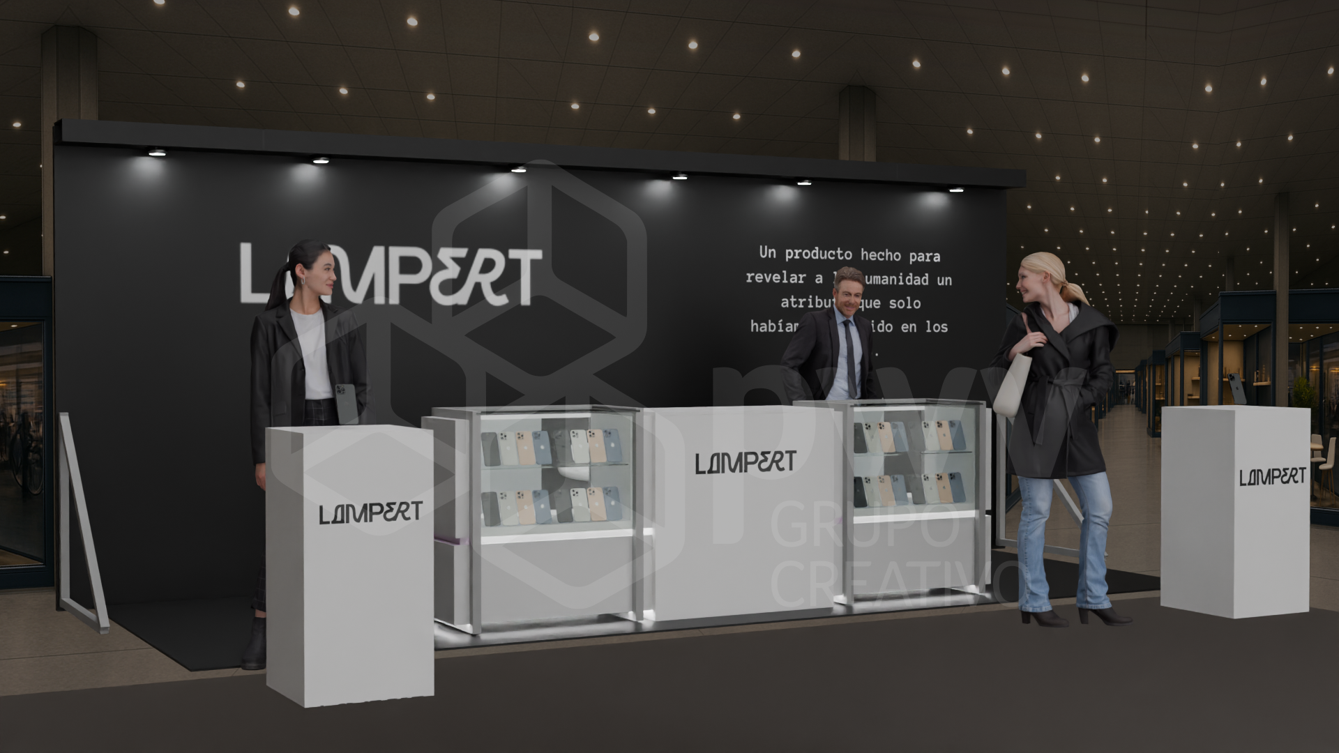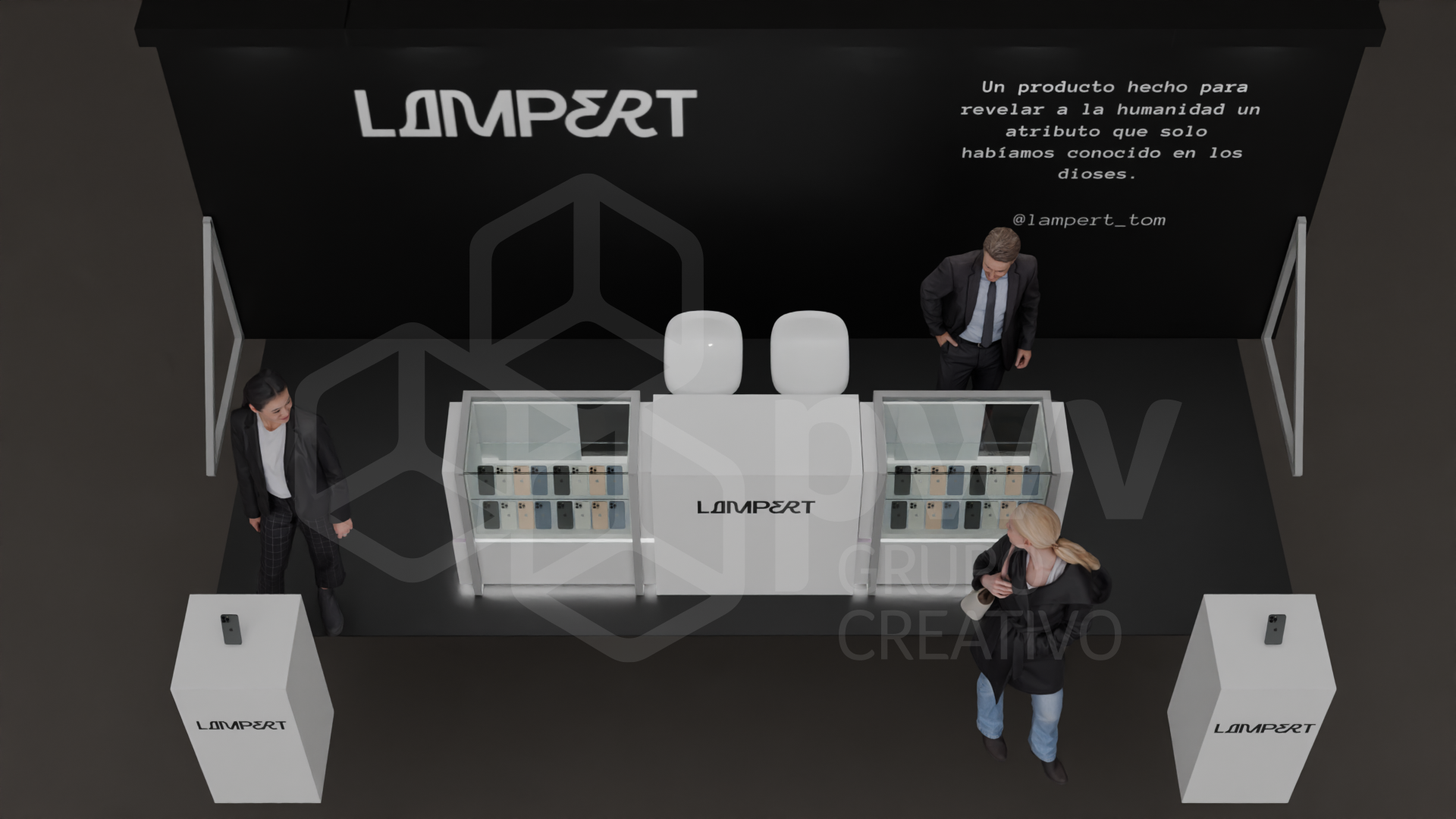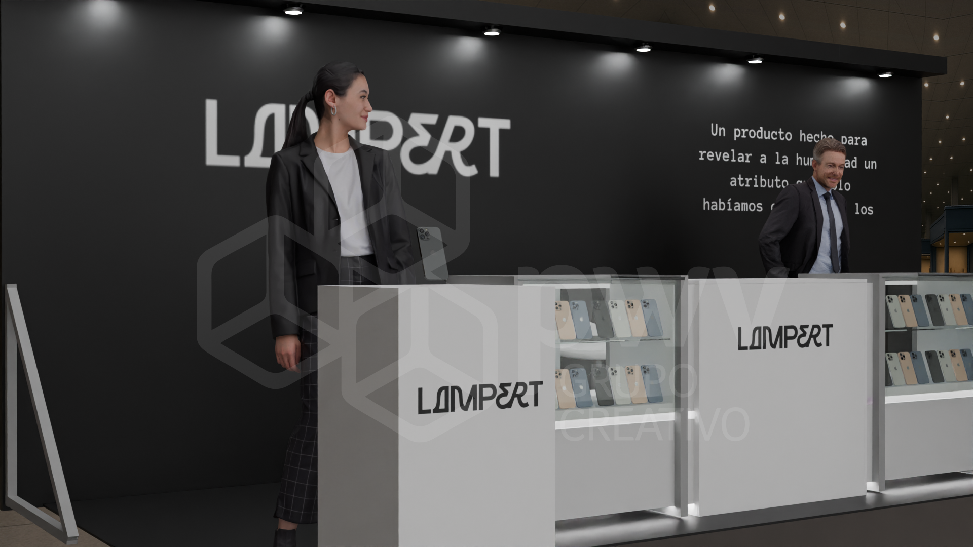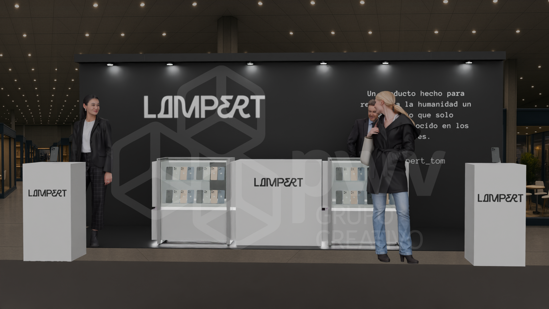 Los dibujos en 3D son aproximaciones y pueden presentar variaciones en los acabados, texturas y materiales que podrían cambiar según los ajustes que se hagan a los presupuestos. El mobiliario se produce tras el pago del anticipo de la factura y está sujeto a disponibilidad. Cualquier material, pantalla o elemento que se instale y sea propiedad del cliente, será exclusivamente su responsabilidad. Este diseño es propiedad intelectual de PWV Grupo Creativo S.AS.