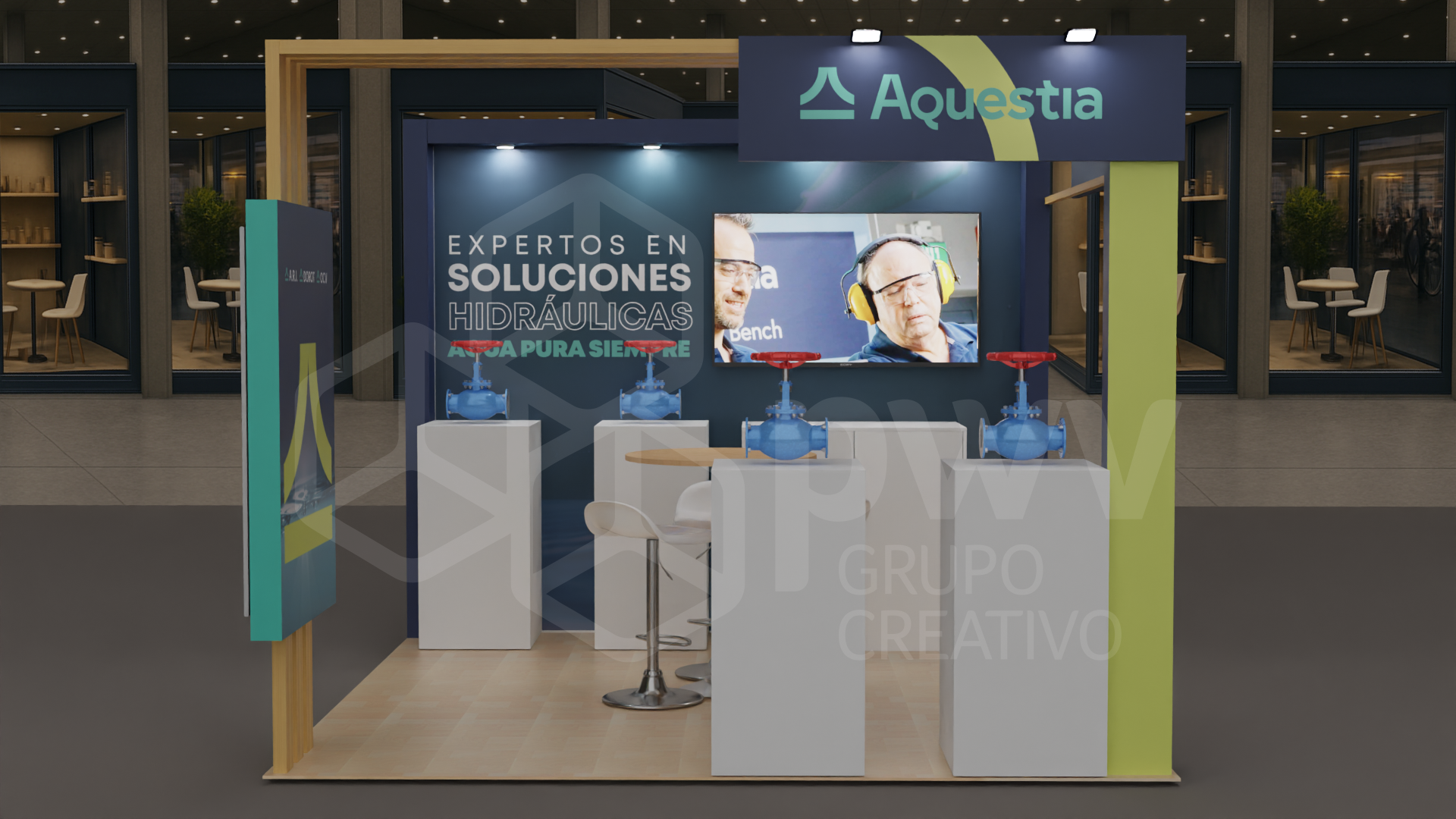 Los dibujos en 3D son aproximaciones y pueden presentar variaciones en los acabados, texturas y materiales que podrĂan cambiar segĂșn los ajustes que se hagan a los presupuestos. El mobiliario se produce tras el pago del anticipo de la factura y estĂĄ sujeto a disponibilidad. Cualquier material, pantalla o elemento que se instale y sea propiedad del cliente, serĂĄ exclusivamente su responsabilidad. Este diseño es propiedad intelectual de PWV Grupo Creativo S.AS.